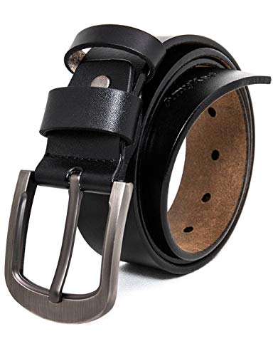 Results AmyKer Men Genuine Leather Dress Belt with Prong Buckle, Heavy Duty Belt, Black Brown, Trim to Fit (