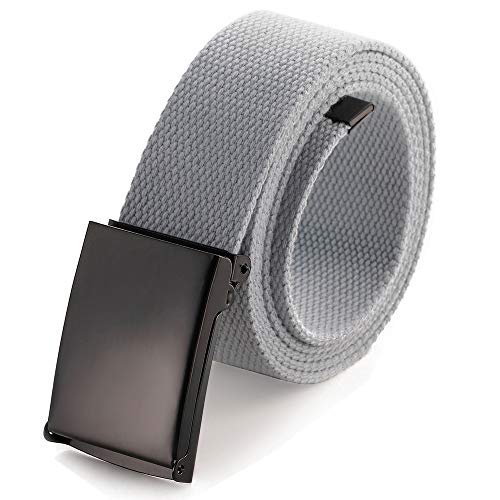 Results Cut To Fit Canvas Web Belt Size Up to 52" with Flip-Top Solid Black Military Buckle (Grey)