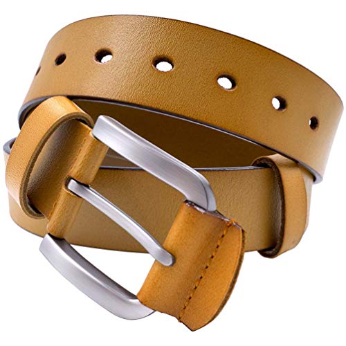Results LionVII Men Leather Belt 1.5inch Full Grain Leather Anti-Scratch Pin Buckle Casual Belts,Great for J