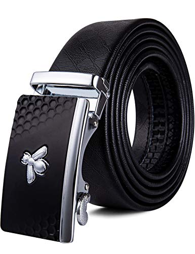 Results Mens Ratchet Leather Belt,Bee Buckle Alloy Silver Genuine Leather Strap Adjustable
