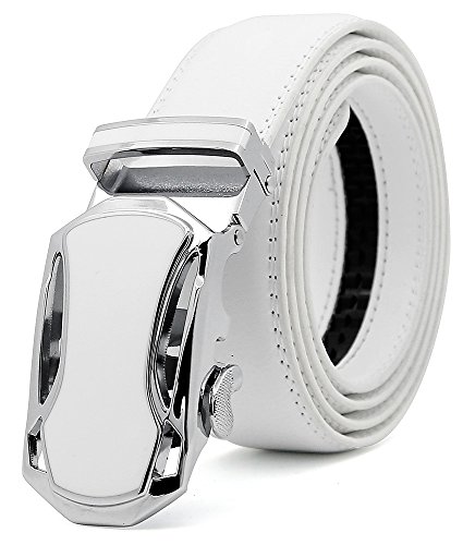 Results 3ZHIYI Men's Adjustable Leather Ratchet Belt Automatic Buckle, white, 35mm Wide, 110CM (fit waist 33