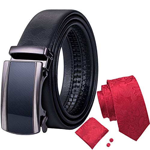 Results Barry.Wang Mens Tie Set with Pocket Square and Cufflink Set Ratchet Leather Belt,Gift for Father's D