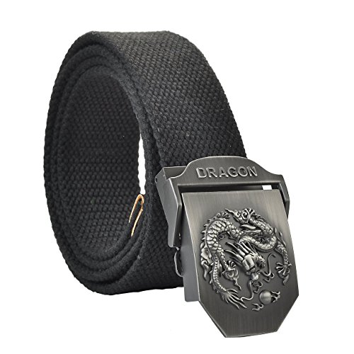 Buy Faleto Mens Military Style Dragon Buckle Outdoor Webbing Canvas Belt (Black)(Size: 49.2 inch fit wai in UK.