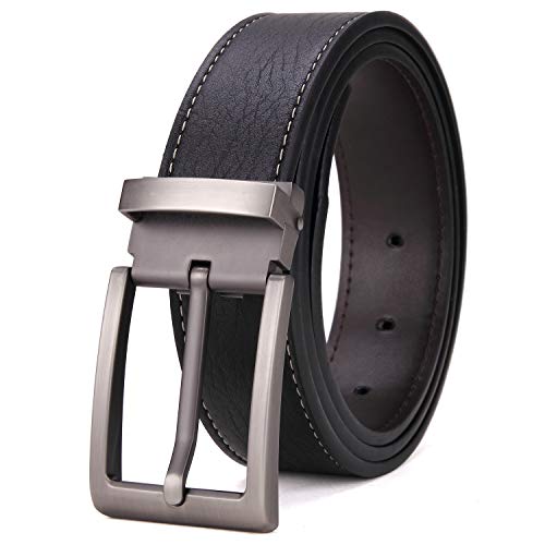 Mens Reversible Belts Tonly Monders Dress Leather Belt ~ Genuine leather belt width 125 32mm Adjustable and removable cut the belt to your desirable length if it is long Reversible belt easy to reverse the black side to brown side Classic simple designer belts contrast stitching trendy and stylish Gift package excellent present for family friends and relatives